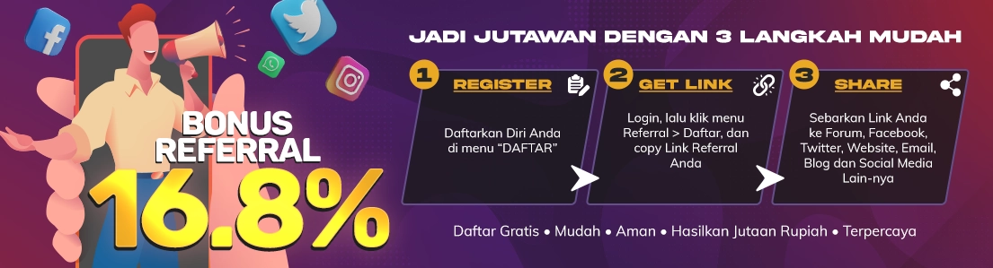 Referral system tidak dipungut biaya apapun. Hanya dengan modal online saja setelah itu Anda hanya tinggal mengecek keuntungan Anda yang dapat dilihatsecara online kapanpun dan dimanapun. Register sekarang juga dan referensikan Link referral Anda.